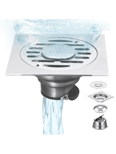 4Piezas Coladera Anti Olores Coladera Universal Zero Olores Con Check Anti Olores Coladera Regadera Baño de Acero Inoxidable 100 * 100mm Redondo Con Check Anti-olores y Tapa Higiénica,Adecuado para Cocina, Alcantarillado, Baño y Aseo - Juego de 4PCS - 12*12 - Añade 7