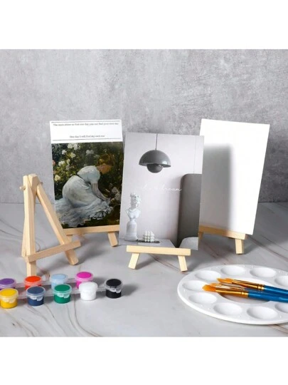 4 piezas de atril de madera portátil con soporte triangular para lienzos, fotos y letreros - Atril de escritorio para pintar para artistas, ferias artesanales, bodas - Estante de exhibición de arte universal, colores y estilos aleatorios - Multicolor - Añade 7