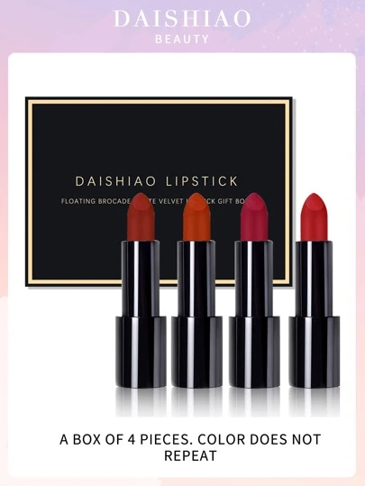 4 Piezas/set Barra De Labios Mate De Terciopelo Impermeable De Larga Duración Y Hidratante, Bálsamo Labial Sólido Cosmético - Multicolor - Añade 7