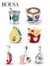 1 pieza Pulsera/Brazalete de cuentas de plata de ley 925 con tema de té y café casual, adecuado para hacer joyas DIY y uso diario, apto para niñas/mujeres, también se puede usar como suministros escolares