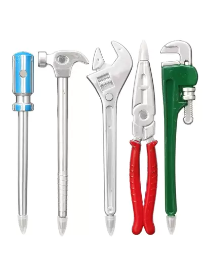 5/10 piezas Juego de bolígrafos con herramientas de metal, llave, martillo, destornillador, tinta negra, regalo único - Negro - Añade 1