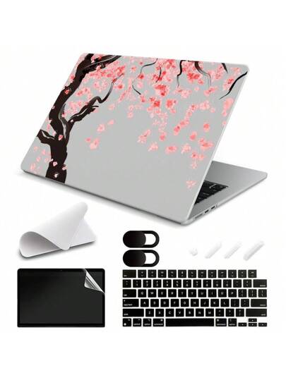 Patrón De Flores De Cerezo Impreso 5 En 1 Y Estuche Transparente Para Computadora Portátil Compatible Con Macbook Air Pro 13.3 13.6 14.2 15.4 15.3 16.2 Pulgadas M1 M2 M3 Pro/max Chip Con Pantalla Retina Y Touch Id, Con Cd-rom, Con/sin Touch Bar Y Touch Dni 2010 2011 2012 2013 2014 2015 2016 2017 2018 2019 2020 2021 2022 2023