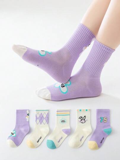 5 pares de calcetines de malla hasta el tobillo para niños, calcetines de verano ligeros para niñas, primavera - Multicolor - Añade 5