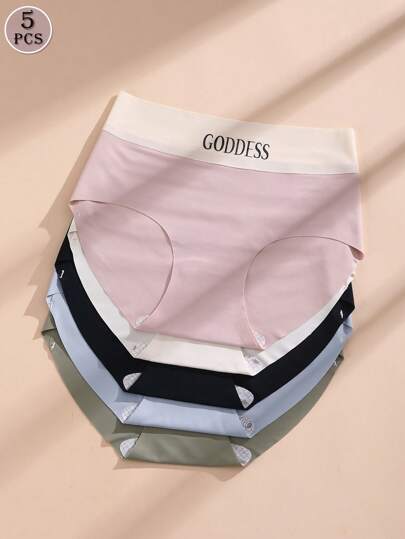 5 piezas de Panties de triángulo de seda de hielo transpirable sin costura y cintura alta - Multicolor - Añade 10