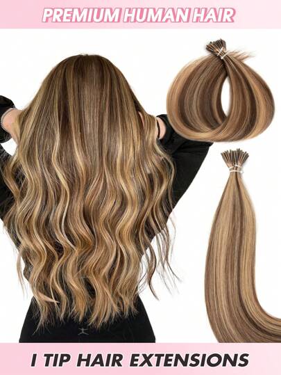 Extensiones de cabello con punta I, cabello humano, color 4/27 marrón chocolate, 14-22 pulgadas rectas, extensiones de cabello con punta I con queratina invisible - S4/27 - Añade 10