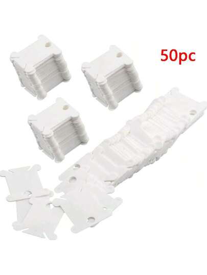 50 piezas Carretes para bordar, bolsa de almacenamiento para hilos de bordar, tarjetas de plástico para hilos para organizadores de hilos de bordado y almacenamiento de costura - Blanco - Añade 7