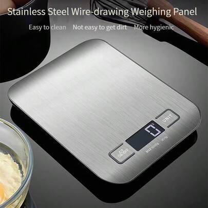 5kg/1g Báscula de cocina digital, pantalla LED, panel de acero inoxidable, báscula electrónica, herramienta de pesaje para el hogar, joyas, alimentos, aperitivos y hornear - Multicolor - Añade 10