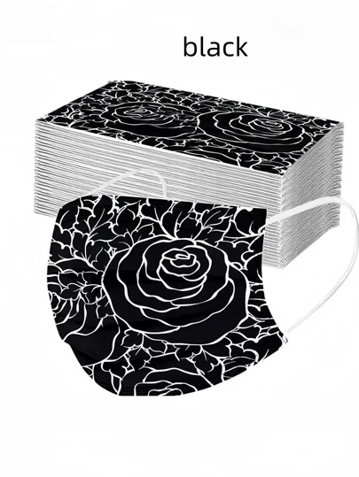 5 piezas de mascarillas faciales desechables para adultos, impresas con diseños florales de 3 capas, máscara protectora decorativa adecuada para todas las temporadas - Multicolor - Añade 6