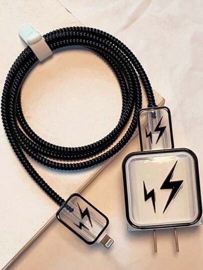5 piezas de protectores de cable de carga tipo rayo, compatibles con el cable de carga rápida del 14 Pro Max, cubierta anticurvaturas para el cargador, caja de cargador de 20W, organizador de cables, protector de cargador - Negro - Añade 8