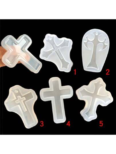 5 piezas Molde de silicona en forma de cruz y estrella para hacer colgantes manualmente - Blanco - Añade 1