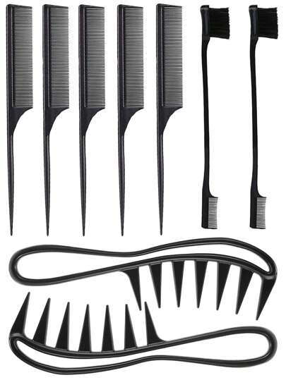 5 piezas Peine de cola de rata & 2 piezas ribete Cepillo & 2 piezas diente ancho Peluca Peine - Negro - Añade 3