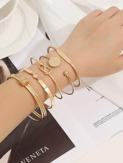 Set de 5 piezas con brazaletes abiertos de estilo minimalista y de moda, accesorios combinados para apilar - Dorado - Añade 4