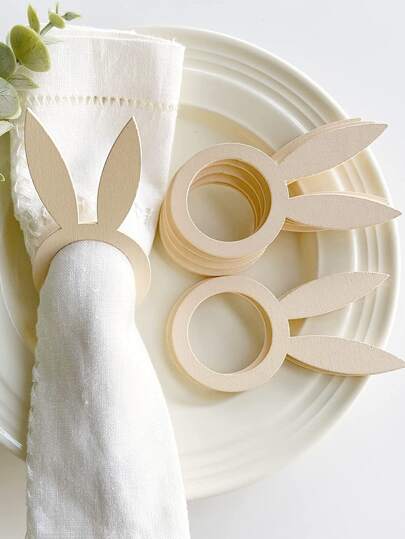 5 piezas madera Servilleta con oreja de conejo Servilletero Anillo para cocina - Amarillo - Añade 1