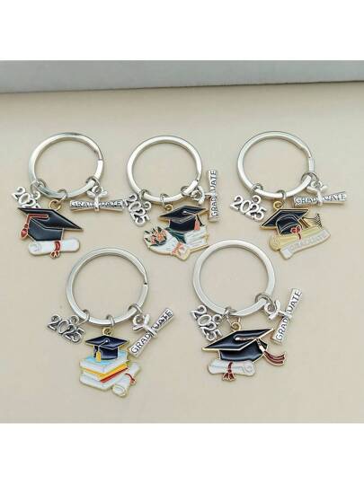 5 piezas Llavero con temática de graduación en negro y dorado, llavero acrílico de graduación 2025, llavero colgante con diseño de birrete de graduación, colgante para bolsa, recuerdo de fiesta de graduación, regalo de graduación, llavero colgante, regalo de fiesta - Multicolor - Añade 9