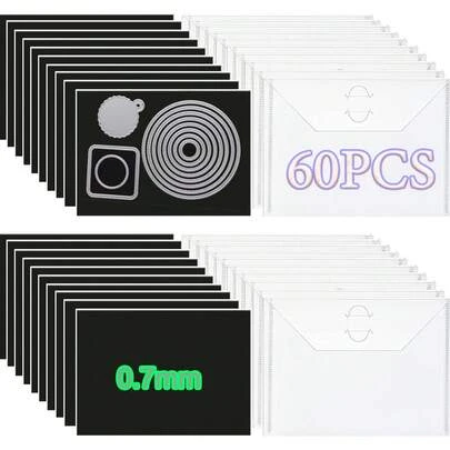 60 piezas Bolsa de almacenamiento de troqueles y sellos con hojas magnéticas, hojas magnéticas de 0.7 mm de grosor para almacenamiento de troqueles, sobres de almacenamiento de troqueles de corte hechos a mano de 7"X5", almacenamiento magnético de troqueles, bolsa de almacenamiento de sellos y troqueles