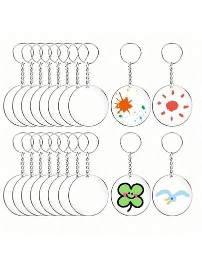 60 piezas Llaveros acrílicos redondos transparentes en blanco, DIY impresión de grafiti de doble cara, regalo creativo de decoración de manualidades de llaveros - transparente - Añade 1