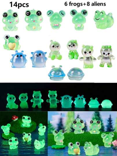 Serie de 6 piezas/8 piezas/12 piezas/14 piezas de decoraciones de estatuas luminosas de resina con diseños de animales, extraterrestres y humanoides interesantes - Multicolor - Añade 7
