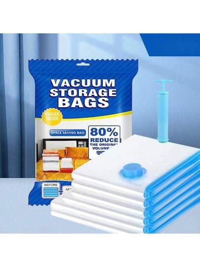 Juego de 6 unidades/8 unidades Bolsas de almacenamiento al vacío con bordes azules gruesos y transparentes para edredón, ropa, viaje - Multicolor - Añade 5