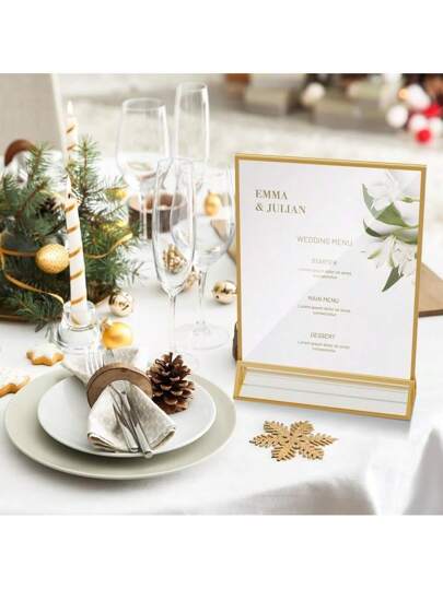 6 piezas Soporte acrílico para letreros con marco dorado y soporte vertical, 4X6" (10X15cm) - Exhibidor de mesa transparente de doble cara para números de mesa de boda, letreros de restaurante, fotos y exposición de arte - Dorado - Añade 1