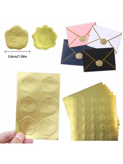 6 piezas Pegatinas doradas con relieve, pegatinas de sellado de sobres con relieve 3D, etiquetas con relieve dorado, decoración para cajas de regalo, tarjetas de felicitación, sobres de invitaciones de boda, pegatinas de sellos creativos premium, pegatinas adhesivas doradas - Dorado - Añade 11