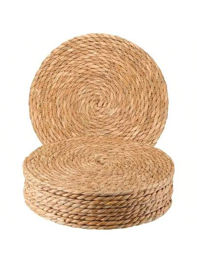 6 piezas de individuales redondos tejidos a mano de ratán - resistentes al calor, fáciles de limpiar, individuales tejidos adecuados para otoño, Halloween, Acción de Gracias, cena navideña - Marrón - Añade 10