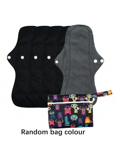 6 piezas Toalla menstural sanitaria, Toalla sanitaria lavable y reutilizable de tela + 1 bolsa húmeda de tela en color aleatorio - Negro - Añade 4