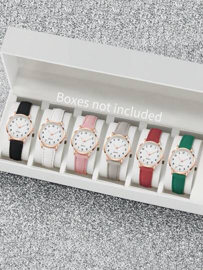 Conjunto de 6 piezas de relojes de pulsera de cuarzo casuales para mujer con correa y esfera con números - Multicolor - Añade 1