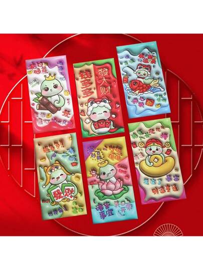 Set de 6 sobres rojos estilo chino personalizados con diseño de serpiente de la suerte, adecuado para Año Nuevo, inauguración de casa, ocasiones de promoción - Multicolor - Añade 1