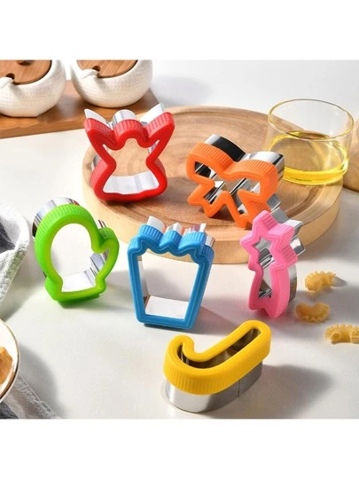 6 piezas de moldes para cortar sándwiches/galletas de acero inoxidable en formas surtidas y colores aleatorios, herramienta de horneado para el hogar para Pascua, Acción de Gracias, Navidad - Multicolor - Añade 11