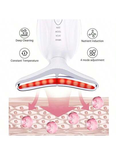 Masajeador facial LED de 7 en 1, dispositivo de belleza para el cuello, recargable por USB - regalo de vacaciones para mujeres, herramienta de cuidado de la piel de 500mAh, diseño compacto, masajeador recargable, estructura duradera, masajeador de vibración, regalo de autocuidado - Blanco - Añade 4