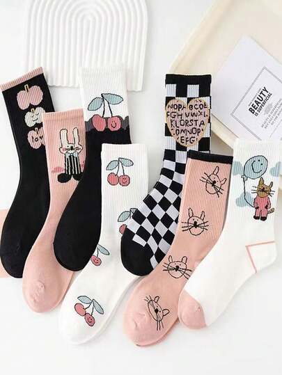 7 pares de calcetines de unicolor, versátiles, transpirables, cómodos y absorbentes, calcetines cortos adecuados para uso diario, deportes, oficina, estilo casual, todo el año para el Día de San Valentín - Multicolor - Añade 1