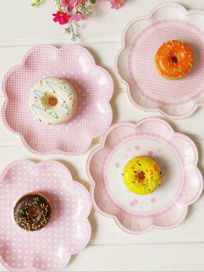 8 piezas de platos de papel con pétalos de flores rosas para fiestas desechables, bodas, cumpleaños, decoraciones de fiesta, vajilla y platos - Multicolor - Añade 1