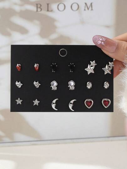 Set de 9 pares de calcetines de fiesta versátiles con diseños de encaje gótico, cruz, corazón, estrella, araña, gota de aceite, estrella, corazón, telaraña y cereza - Multicolor-16 - Añade 12