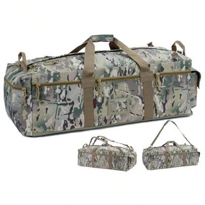 Esta bolsa de lona táctica extragrande de 90 L está fabricada con resistente tejido de poliéster 600D, diseñada para soportar condiciones adversas. Cuenta con una cremallera resistente del n.° 10, hebillas reforzadas y un fondo de cuero artificial para facilitar la limpieza y un uso prolongado. Incluye un espacioso compartimento principal de carga superior (aproximadamente 84 L) y 6 bolsillos y fundas externas (aproximadamente 6 L en total) para acceder rápidamente a lo esencial. Equipada con asas de transporte de 5 cm de ancho, asas laterales y 6 patas protectoras de plástico, esta bolsa garantiza un transporte cómodo y práctico. También incluye correas de mochila acolchadas y extraíbles y una correa de bandolera ajustable y desmontable para opciones de transporte versátiles. Perfecta para despliegues militares, viajes, acampadas, almacenamiento de equipo deportivo y más, esta versátil bolsa de carga ofrece una excelente relación calidad-precio gracias a su excelente equilibrio entre calidad y funcionalidad.