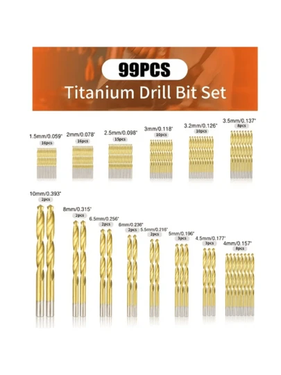 99 piezas/set titanio Broca moderno Broca para madera - Dorado - Añade 5
