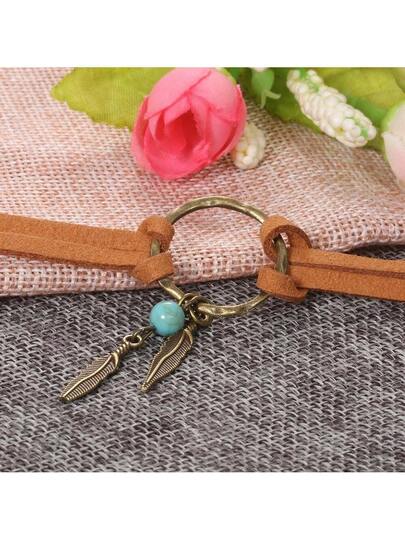 Un collar tipo choker con forma geométrica de círculo, hoja y pino - Marrón - Añade 1