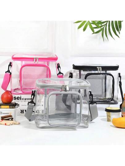 Una bolsa bandolera transparente de PVC para actividades al aire libre, picnics, fiestas, almuerzos, cosméticos, artículos de tocador y almacenamiento portátil - bolsa de almacenamiento - Añade 1