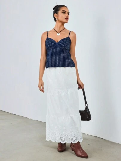 Chiquease Camiseta sin mangas con escote en V, de encaje y topos, que reduce la apariencia de la edad - Azul Marino - Añade 2