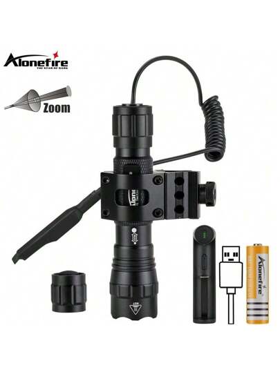 Linterna táctica de 12W Alonefire con zoom, potente, para uso al aire libre, viaje, caza, camping, pesca, senderismo, con soporte, interruptor remoto y luz antorcha de alta potencia, accesorios para camping - Negro - Añade 1
