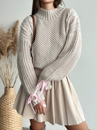 Aloruh Nuevo jersey de cuello alto de color albaricoque, versátil y cálido, para otoño/invierno - Caqui - Añade 4