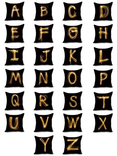 Funda de cojín sin relleno alfabeto con estampado - Negro - Añade 1