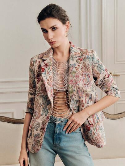 Anewsta Chaqueta de mujer tipo blazer de estilo romántico francés de jacquard, de manga larga, corte holgado y estilizador, elegante para uso diario, ideal para el Día de San Valentín - Multicolor - Añade 1
