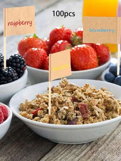 Aproximadamente 100 Unids/pack, Decoración De Comida Para Fiestas, Palillos De Dientes, Banderas, Incluyendo Frutas, Pasteles, Hamburguesas, Banderas De Cóctel Con Tarjetas De Etiquetas - Marrón - Añade 5