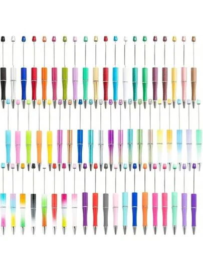 Cantidad surtida de bolígrafos con cuentas de plástico de colores - Set de fundas para bolígrafos DIY para útiles de oficina y escolares, apto para mayores de 14 años - Suministros de cuentas de bricolaje - Añade 3