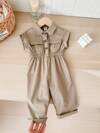 SHEIN LMoss Kids Pelele corto de manga corta y cintura entallada, con cuello, en color beige, para bebé niña, de verano