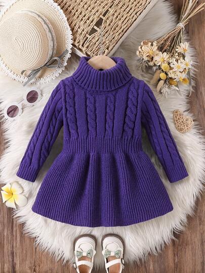 Vestido suéter de punto trenzado con cuello alto para bebés niñas - Rojo violeta - Añade 5