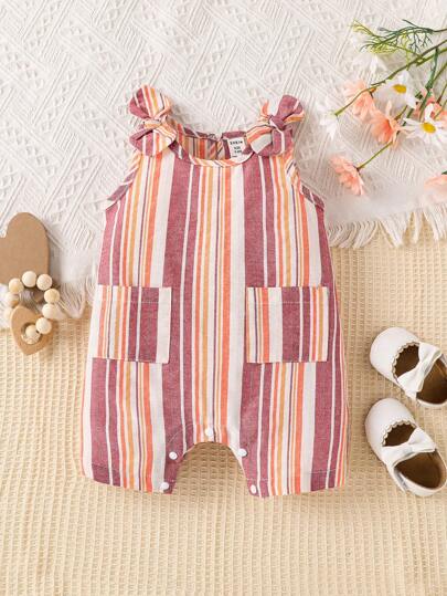 Bebé Mono de rayas de hombros con lazo con parche de bolsillo - Multicolor - Añade 1