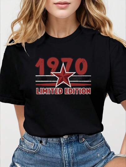 EDICIÓN LIMITADA 1970 Camiseta de mujer de algodón puro de ajuste cómodo - Negro - Añade 4