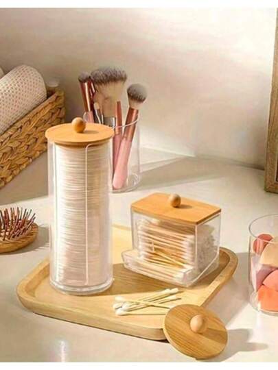 Bamboo Hygiene Cotton Swab Disc Holder Organizer Kit - Multicolor - Añade 1