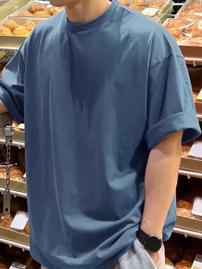 DAZY Camiseta de algodón de hombro caído de color sólido, ropa de vuelta al colegio - Neblina azul - Añade 4